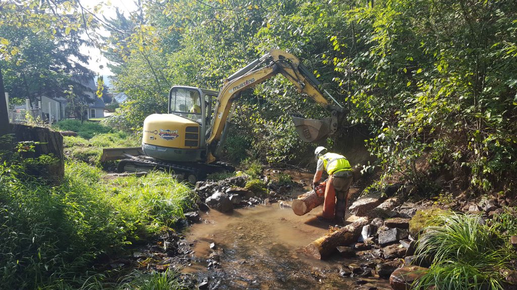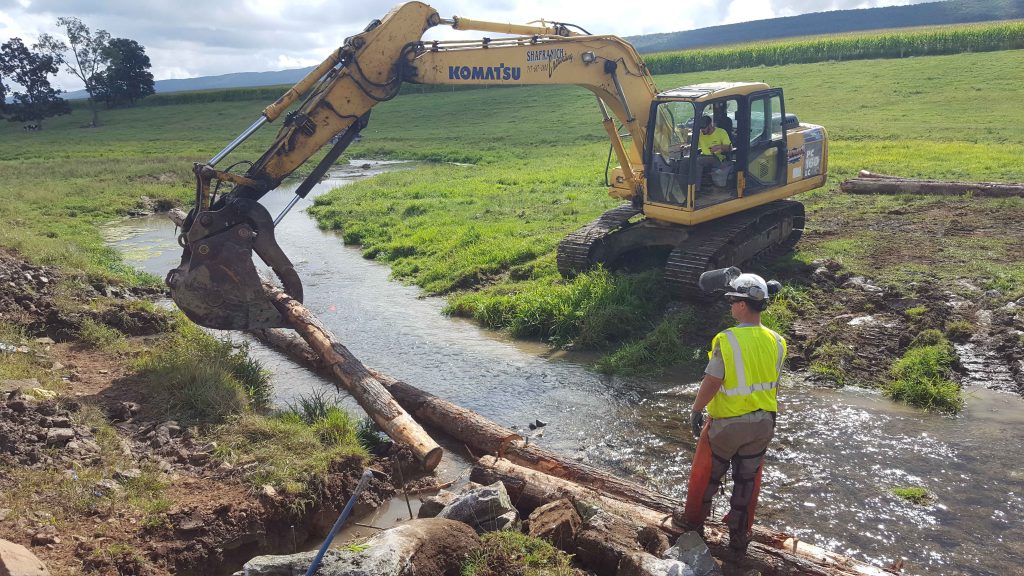 So what are the Conservation District and partners doing about it? One solution is the installation of fish habitat structures. These structures create cover for fish as well as change the water flow. Certain structures accelerate and redirect water to clean out gravel and cobble of fine sediment. Other structures redirect water to encourage scouring of deep pools where fish can hide.