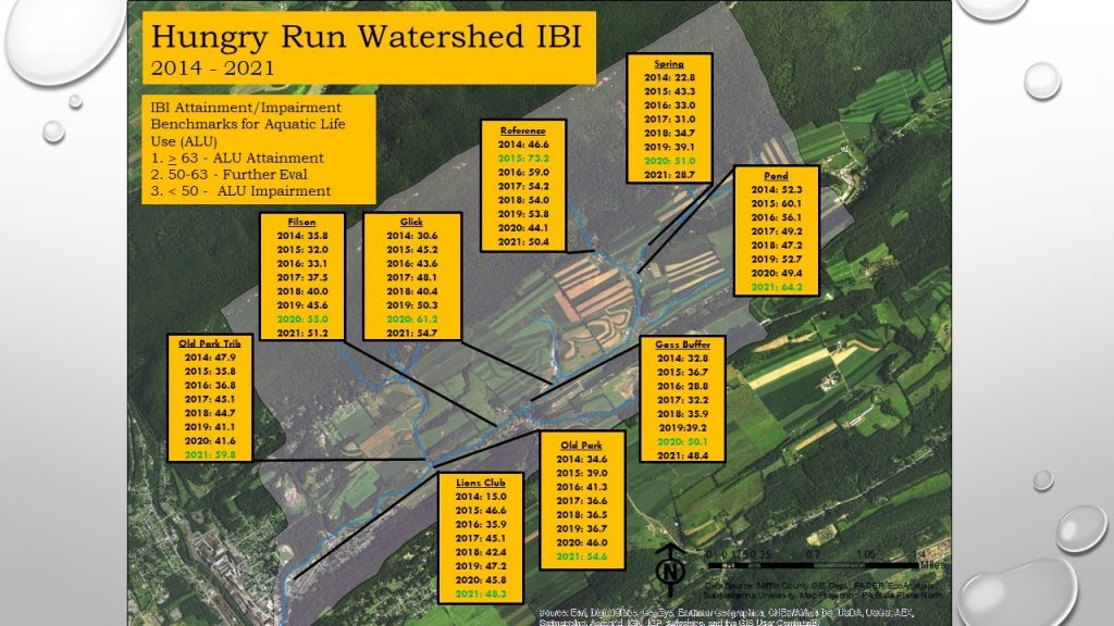 The Kishacoquillas (Kish) Creek Watershed continues to improve with each new project breaking ground. Benthic macroinvertebrates and water quality were sampled in April as a part of our Surface Water Assessment Program (SWAP) in the Upper Kish, Little Kish and Hungry Run. Both water quality and IBI (Index of Biotic Integrity; used to determine health of a stream by assessing the quantity and quality of insect species present) scores continue to improve, with many sites seeing record high numbers. Partnering with the PA Department of Environmental Protection (DEP), sampling was also completed via backpack electrofishing units in July of 2021 on 9 sites divided between the Upper Kish, Little Kish and Hungry Run. Young of year wild brown trout (Salmo trutta) were present at each sampling site as well as multiple age classes. These results suggest that trout use the streams as spawning grounds as well as a year-round refuge (Figure 1). This is possible due in large part by many spring inputs and improving substrate quality.